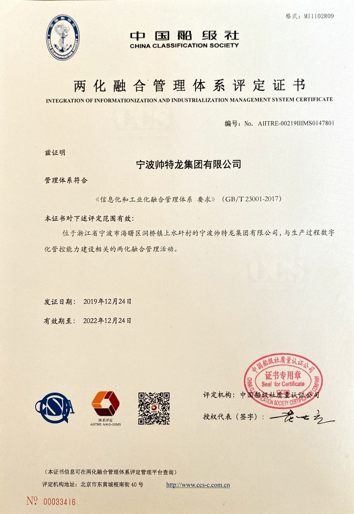 近日,sunbet申搏官方网站公司顺利取得国家工信部颁发的“两化融合管理体系评定证书”,标志着我司信息化工作迈上了新的台阶。